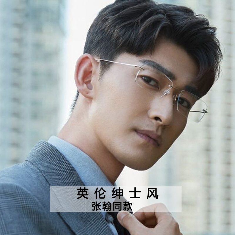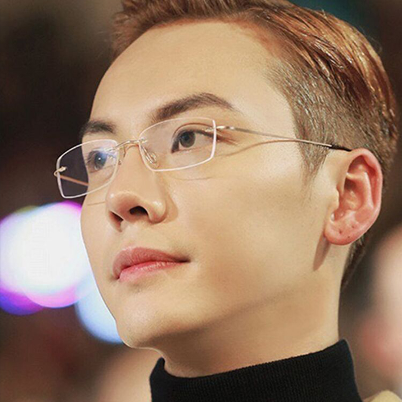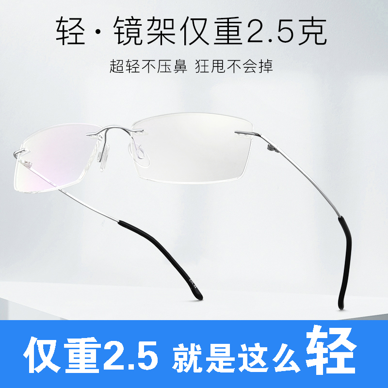 无框纯钛成品近视镜大脸超轻切边眼镜框变色配近边框防蓝光眼镜男