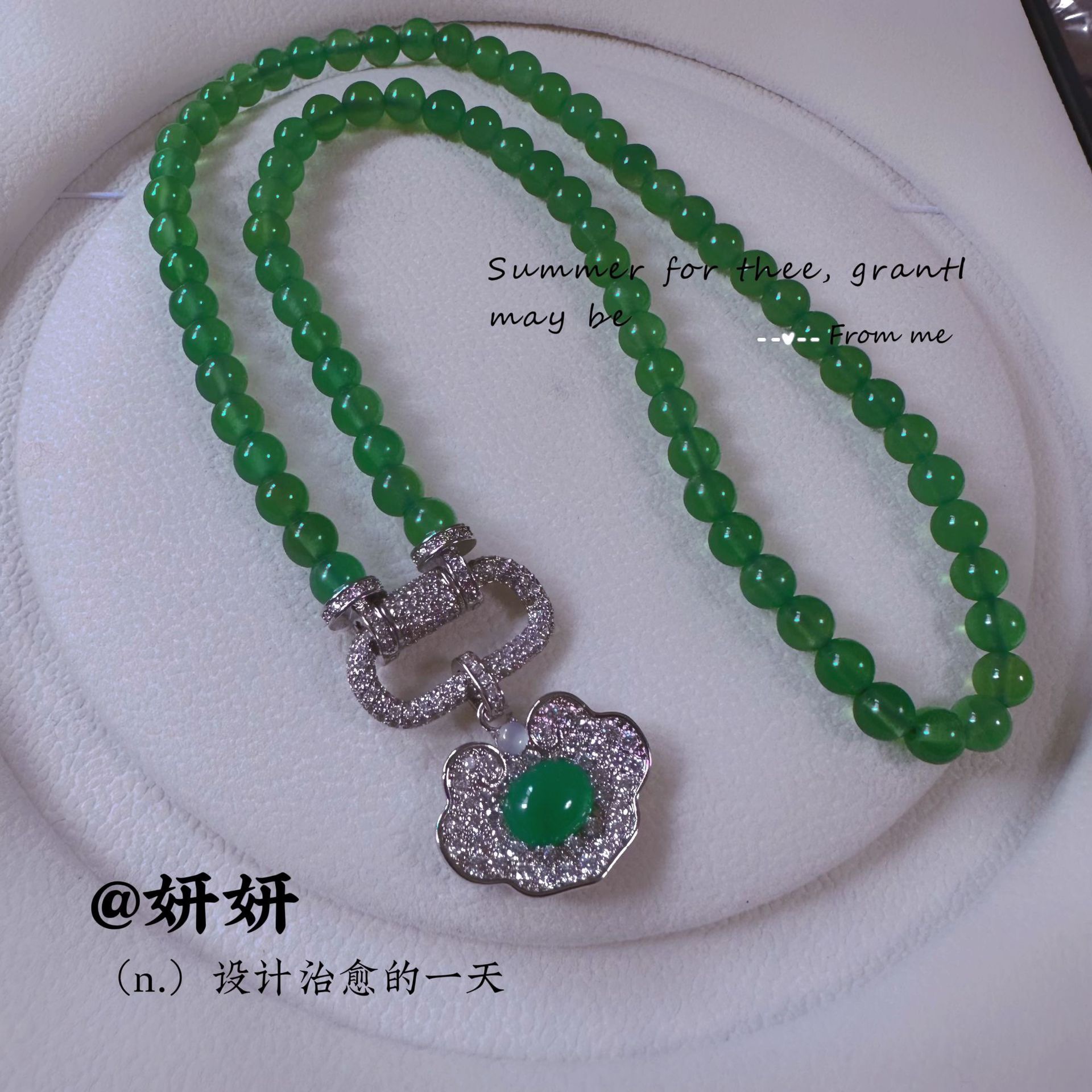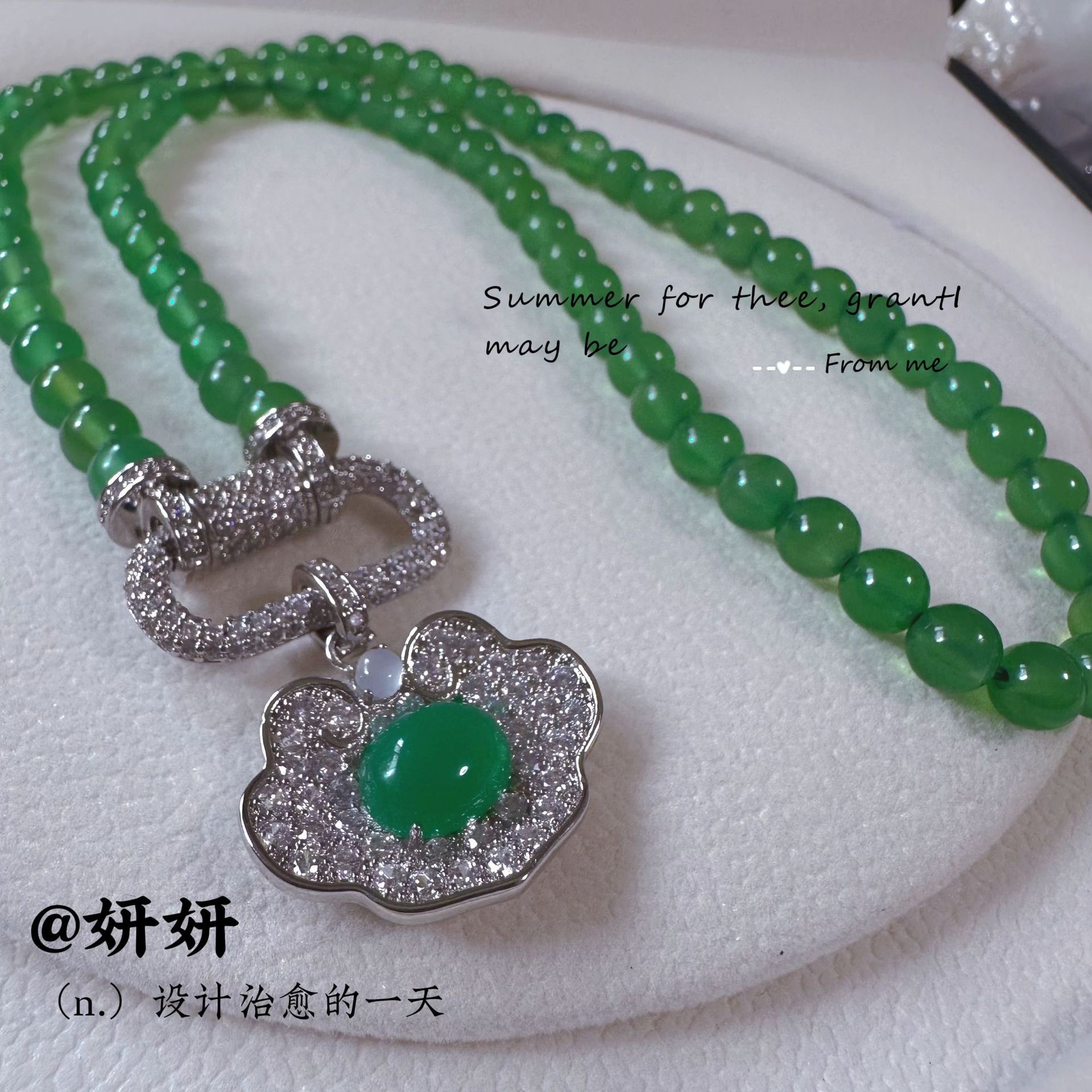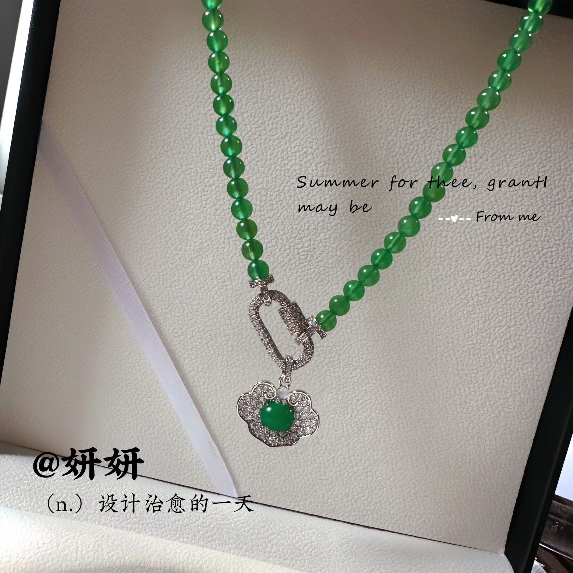 新品新中式祖母绿微镶如意钻扣玛瑙项链短链多圈手链女毛衣链定制