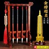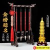 文昌毛笔套装实木笔架挂4支九层十三纯J黄铜塔学生男女孩书桌摆件