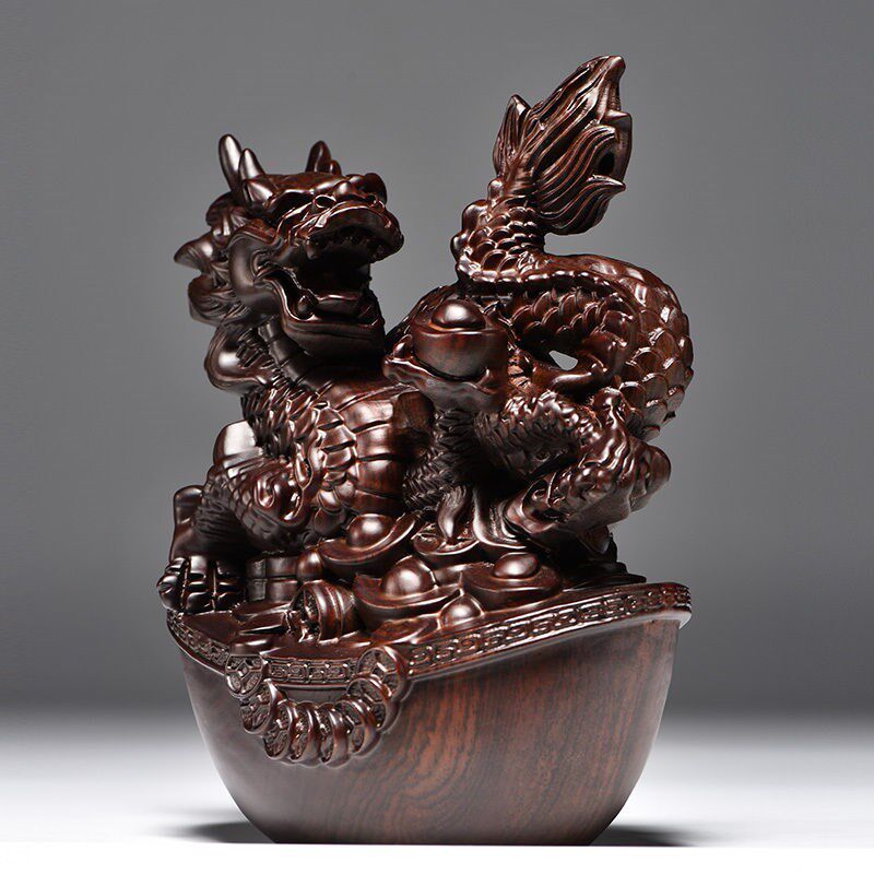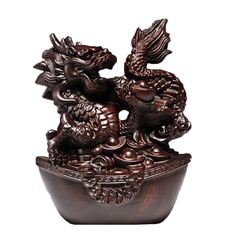 黑檀木雕龙摆件实木生肖龙动物客厅办公室家居装饰红木工艺品礼品