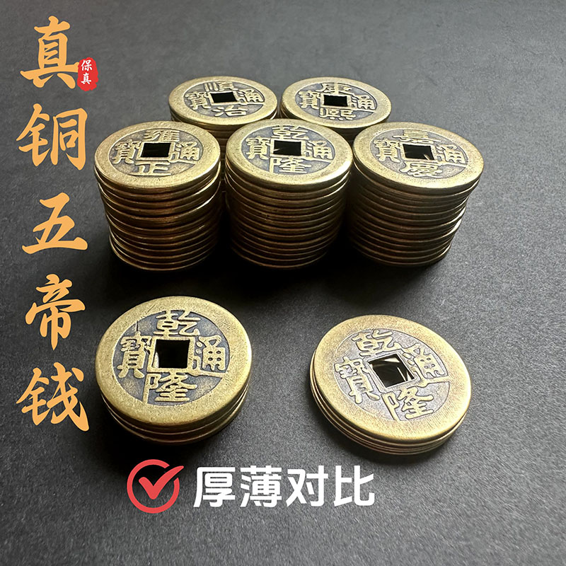 镇宅纯黄铜五帝钱真品门对门挂件葫芦压门槛铜钱加厚古币摆件乾隆