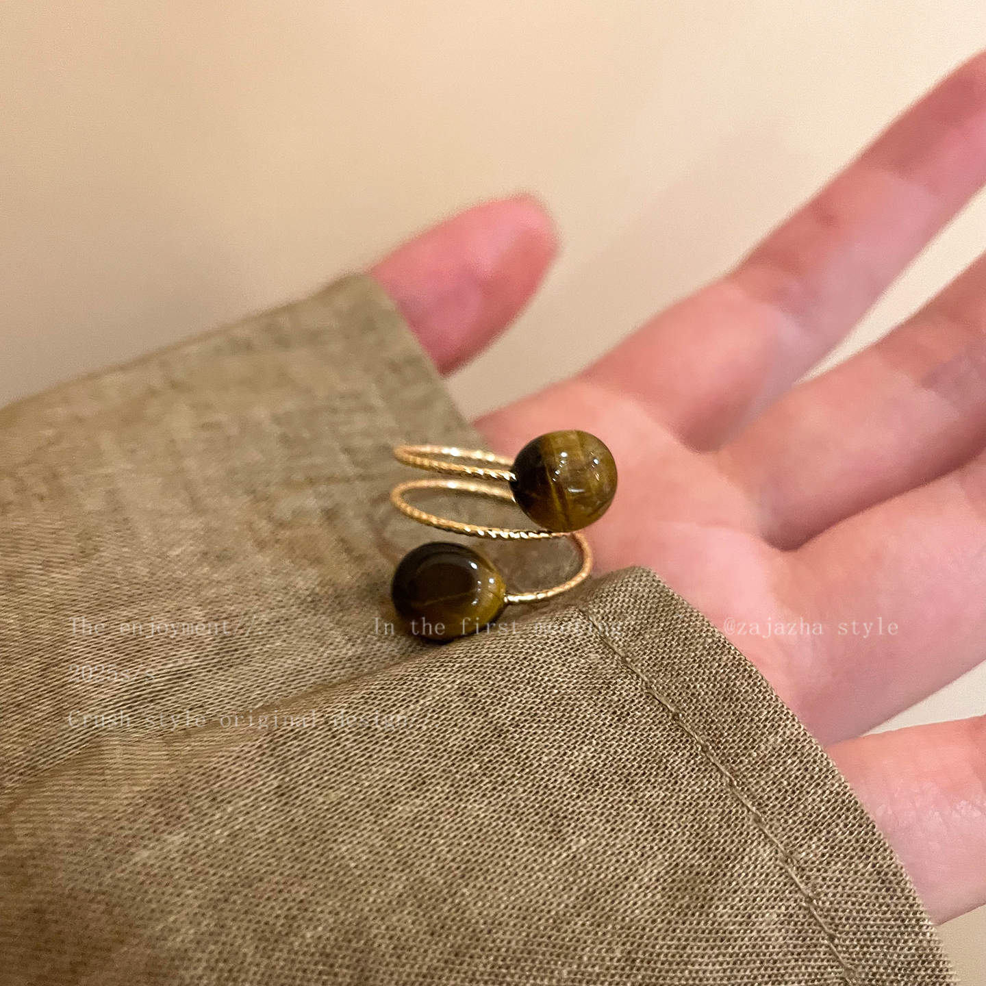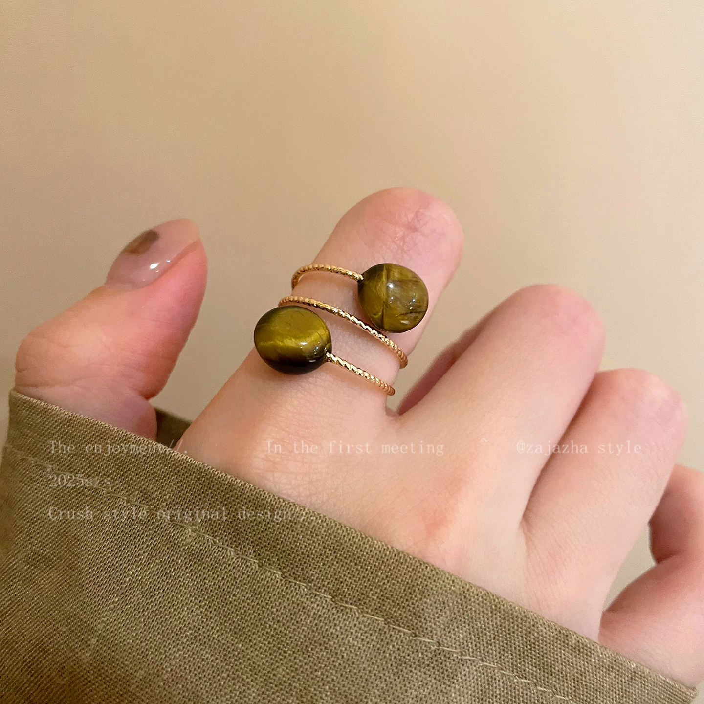 冬日吸睛~设计感虎眼石环绕戒指女2025新款食指戒小众高级感指环