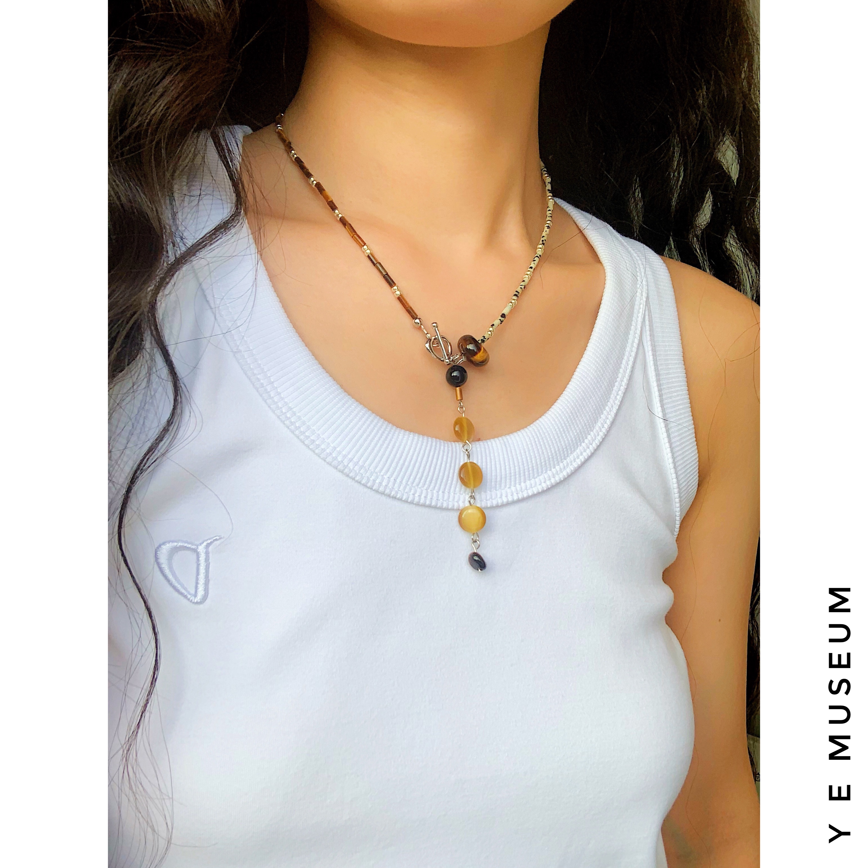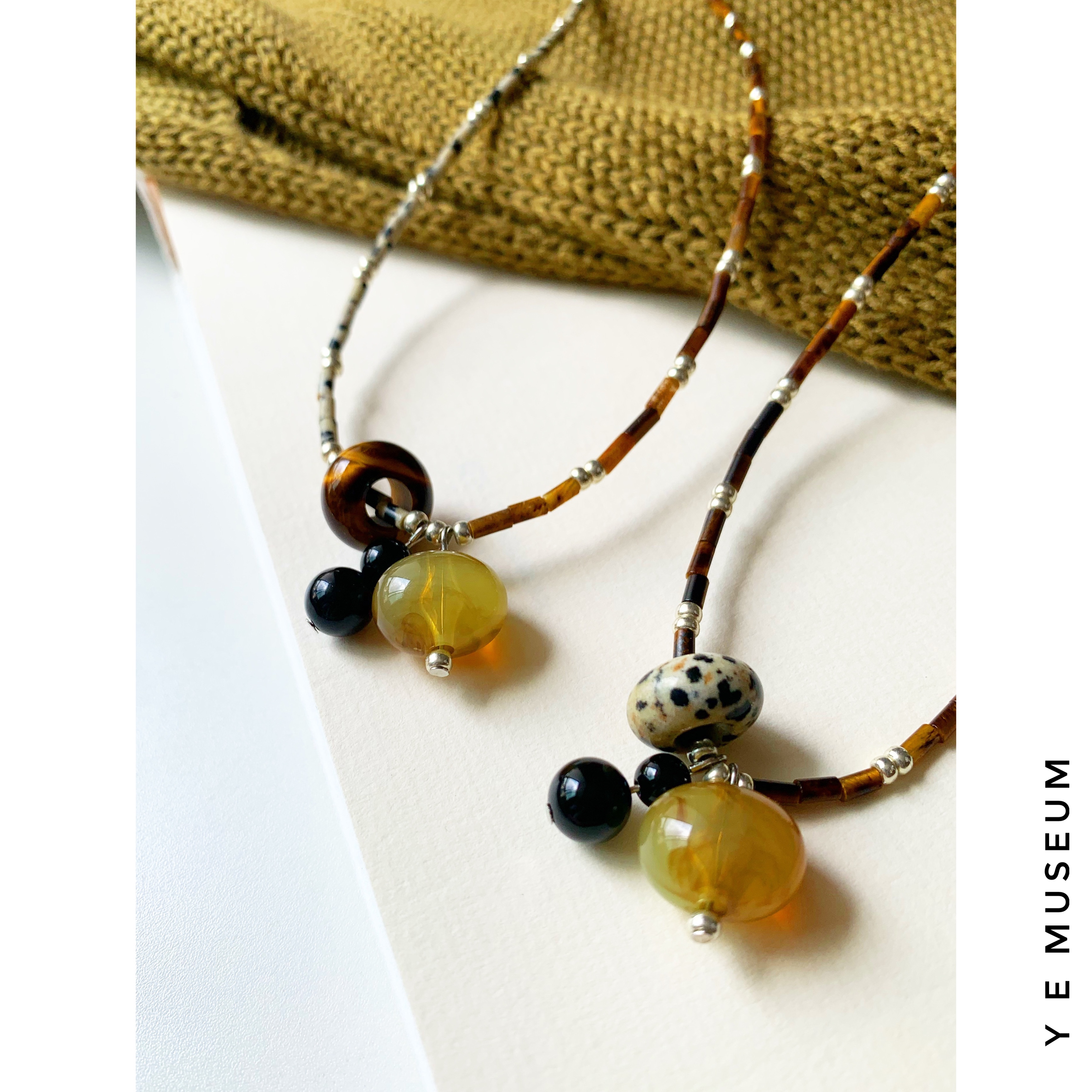 {鱼耳Museum}原创 小众百搭虎眼石串珠项链 多种戴法琥珀色配饰