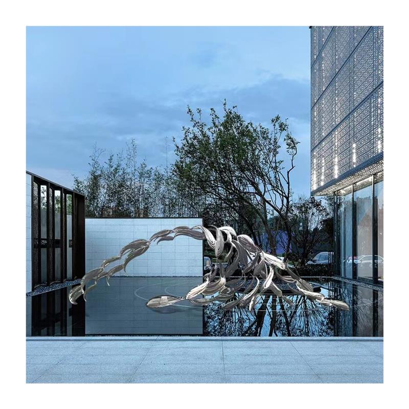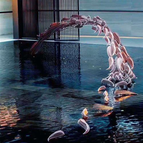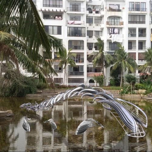 户外大型不锈钢雕塑定制广场景观落地摆件水池水景金属小鱼装饰品