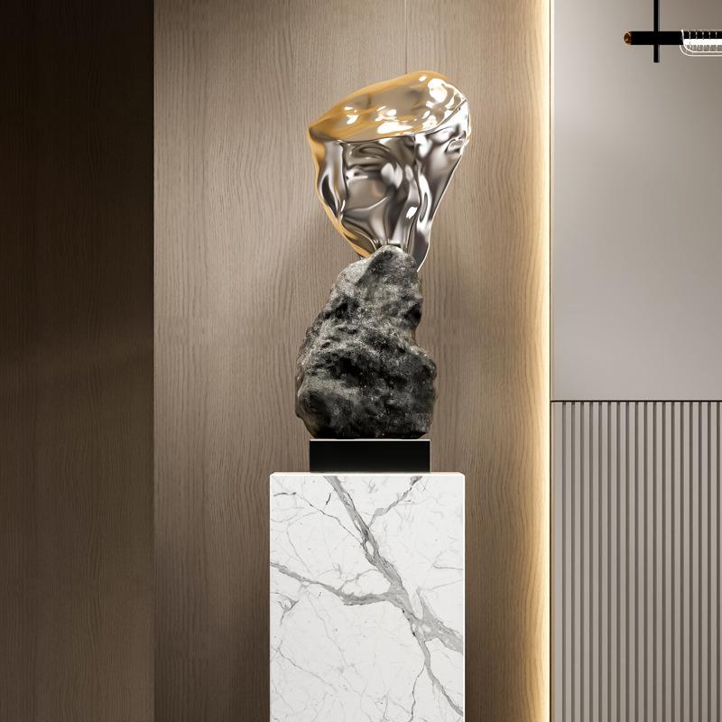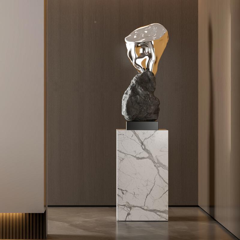 新中式石摆头假山落地轻件艺术奢雕塑公JGD司玄关酒店大堂通道装