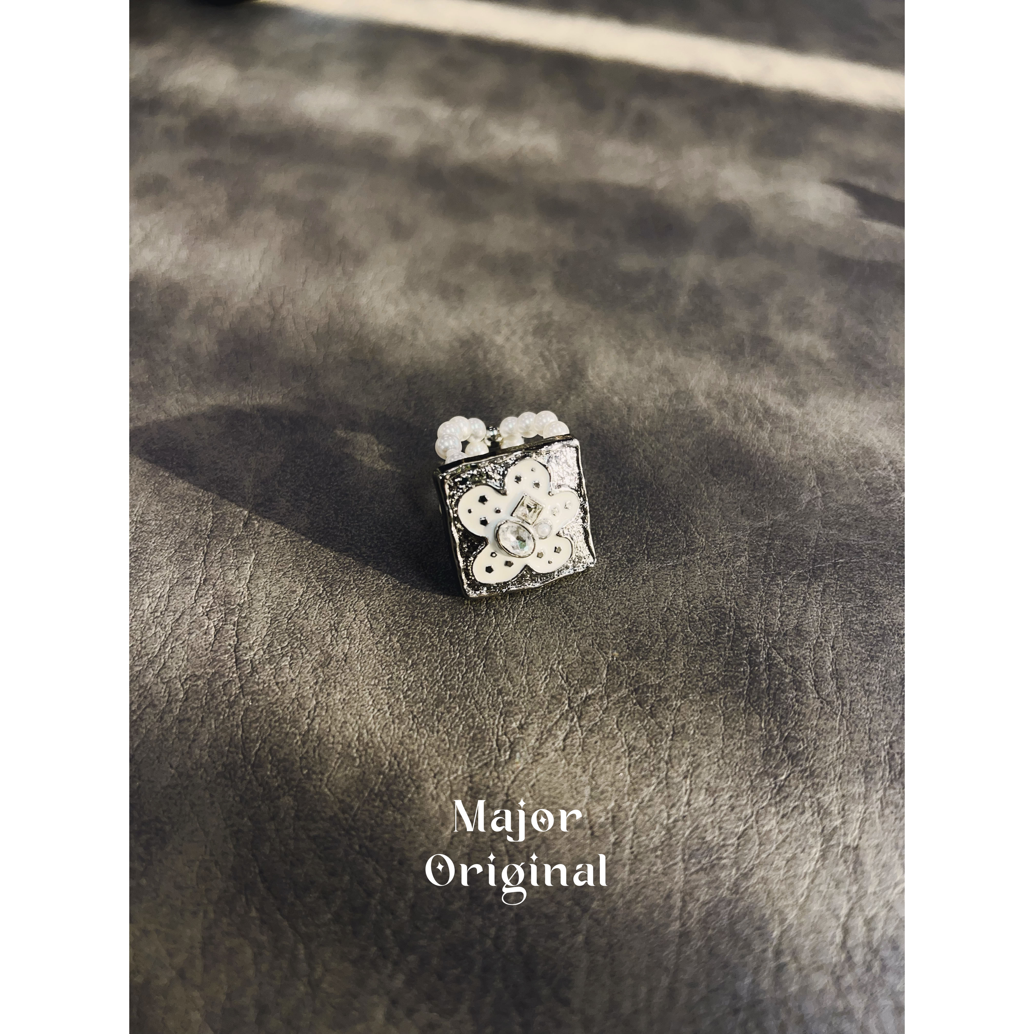 美作原创MAJOR 施家珍珠宝石花幸运钻石星钛钢弹力戒指