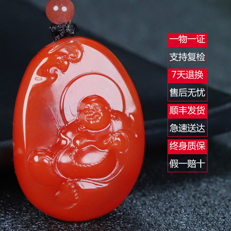 天然四川凉山南红玛瑙佛大肚弥勒佛原石挂件笑佛男女款吊坠101号
