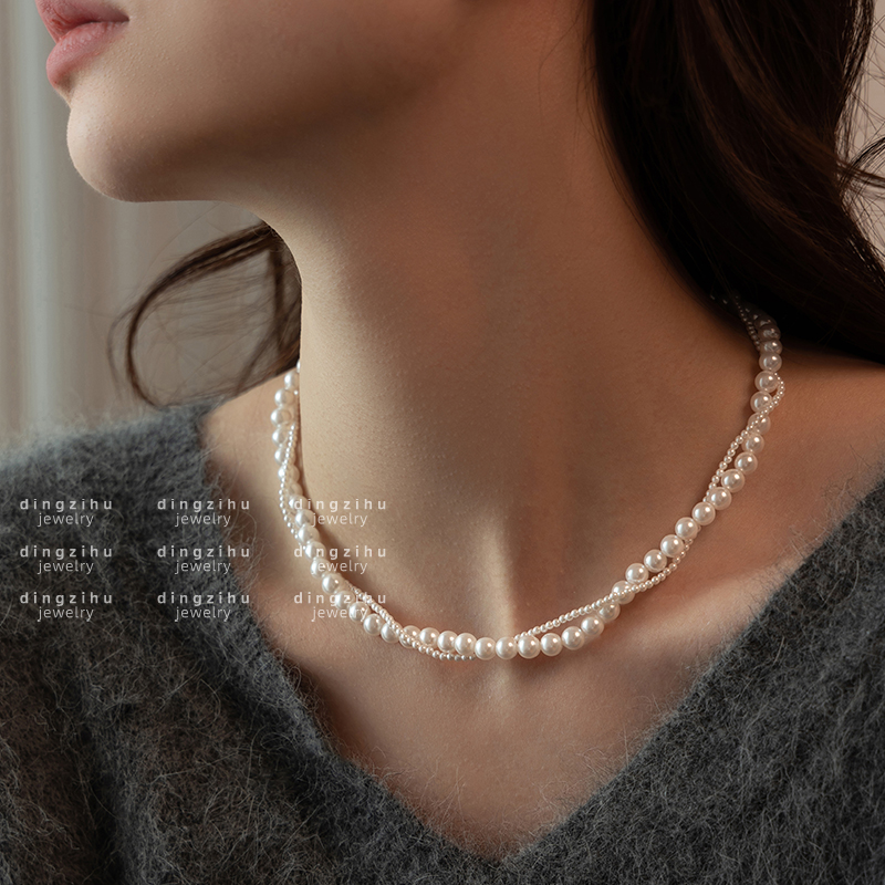 S家双层叠戴珍珠项链女轻奢麻花小众高级感气质毛衣链锁骨链颈链