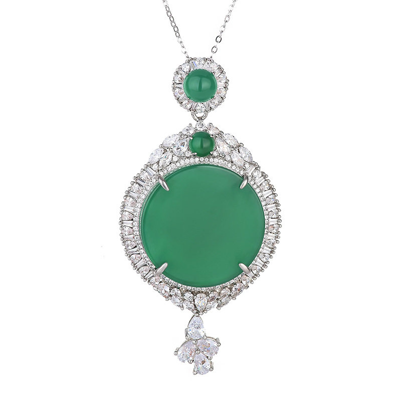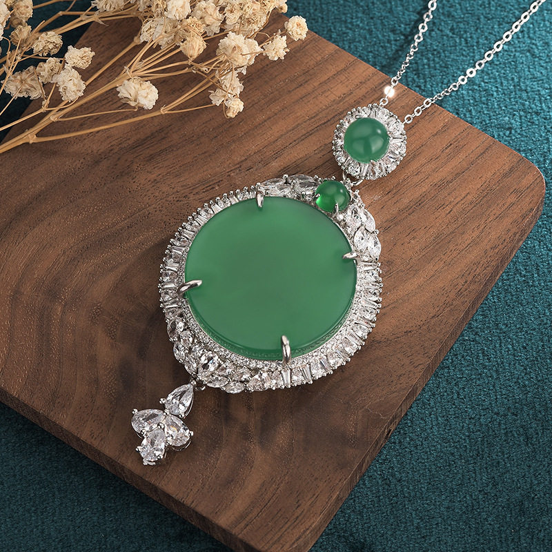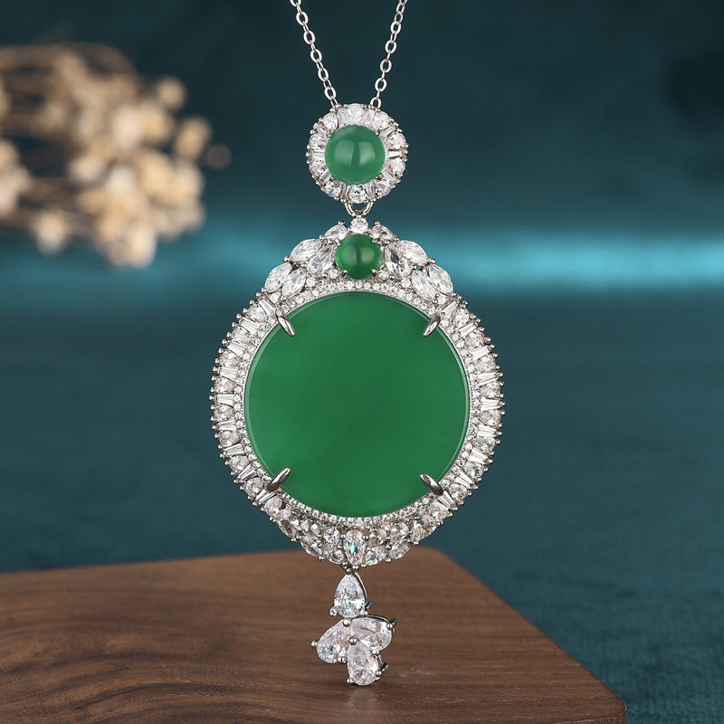 汉服旗袍饰配天然冰种玉髓阳绿平安扣饰品项链无事牌男女玉佩挂件
