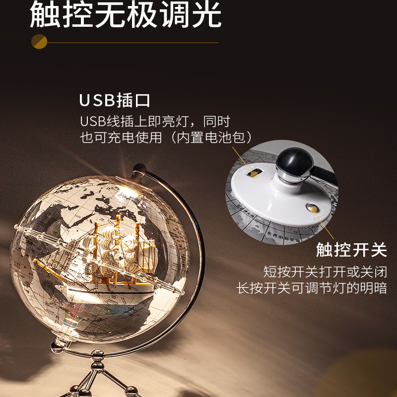 轻奢透明地球仪摆件家居装饰品轻奢高档办公室桌面客厅电视柜摆设