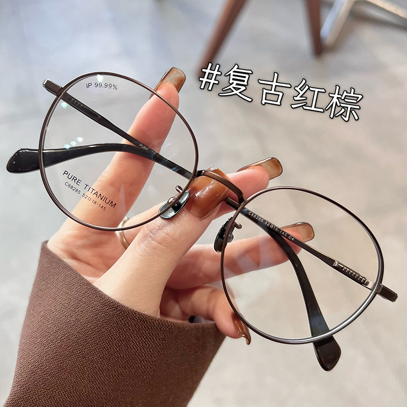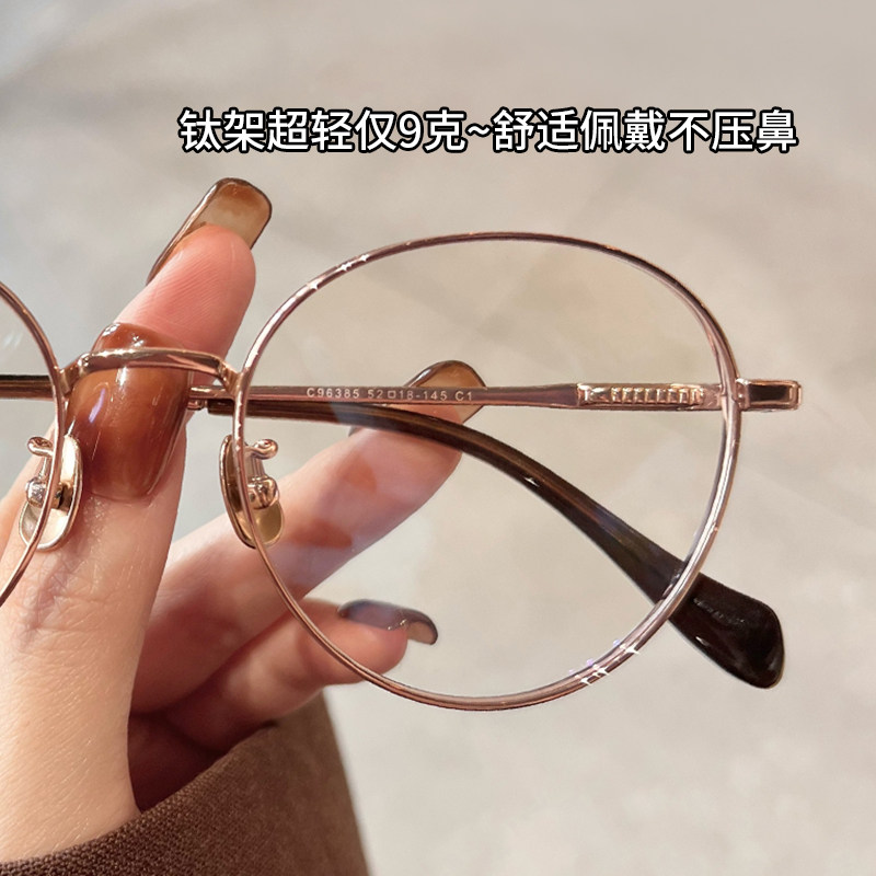 9g钛架复古金丝眼镜框女近视可配有度数椭圆大框方脸专用眼睛镜架