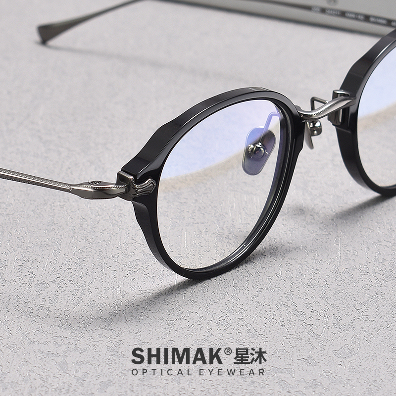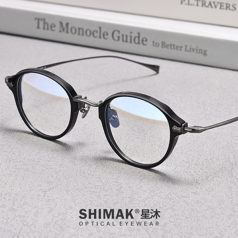日系复古椭圆港风纯钛板材大脸手工黑色眼镜框镜架男可配防蓝光女