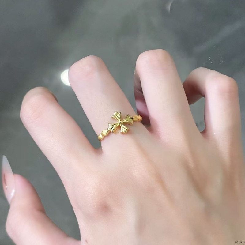 5G黄金十字架戒指女999足金时尚鸢尾花活口指环纯金食指戒送女友