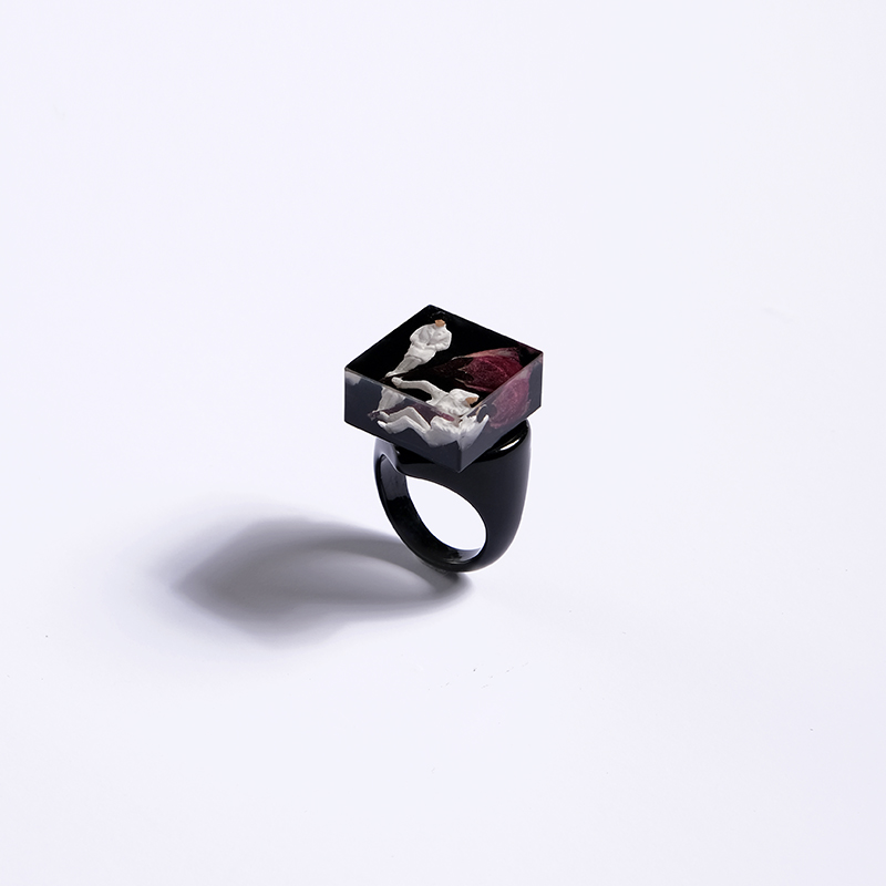 tickle原创设计小众个性艺术黑色戒指潮酷电子少女手工节日礼物