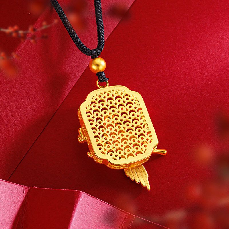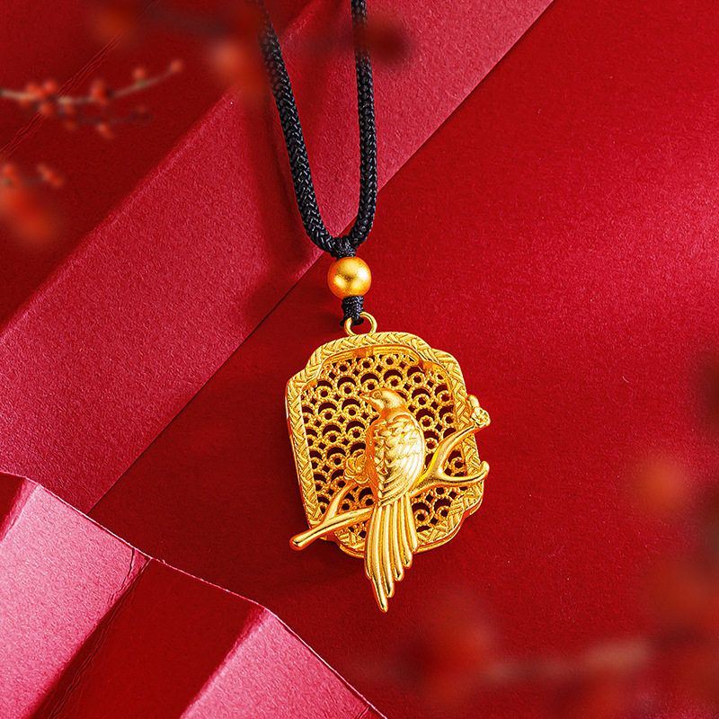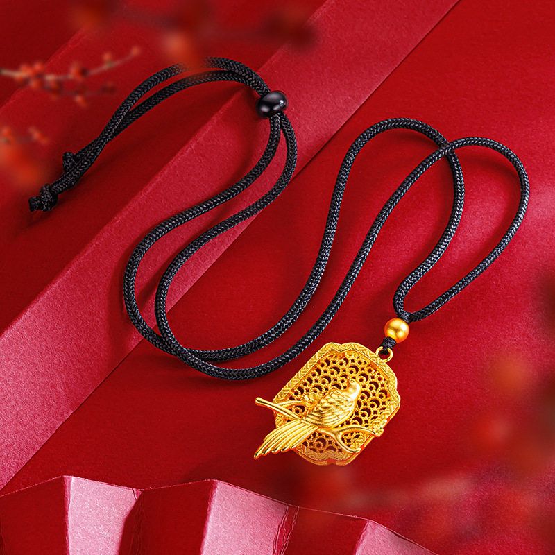新款喜上枝头喜鹊花窗吊坠女越南沙金仿真黄金黑绳编织绳项链配饰