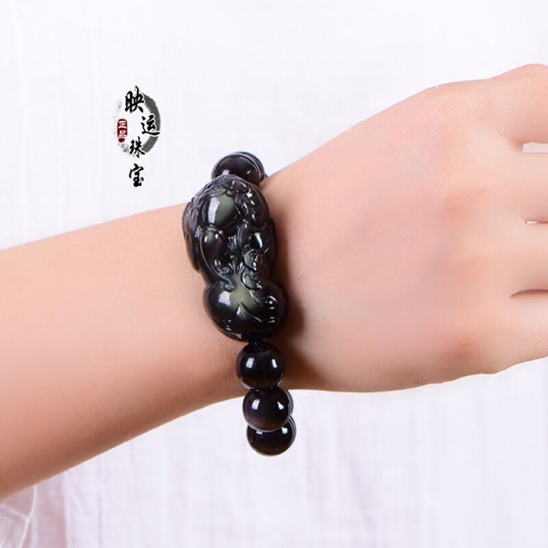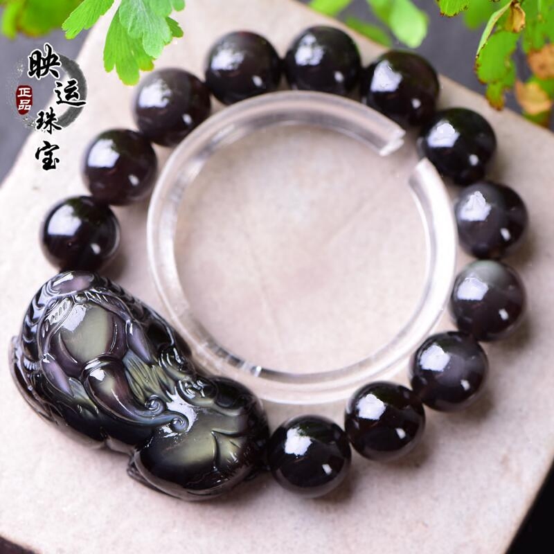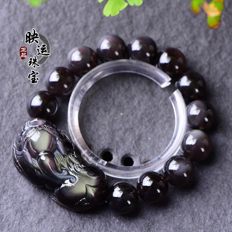天然彩虹眼黑曜石貔貅手链珠皮丘饰品手串2026年本命年礼物男女士