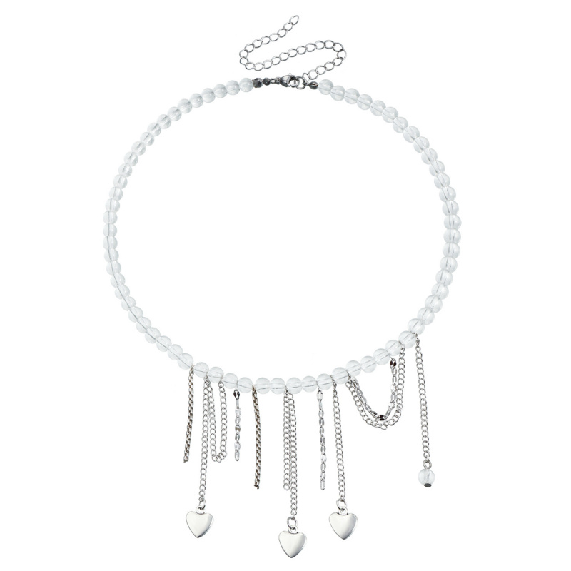 欧美饰品ins透明色串珠爱心流苏吊坠颈链锁骨链性感时尚项链首饰