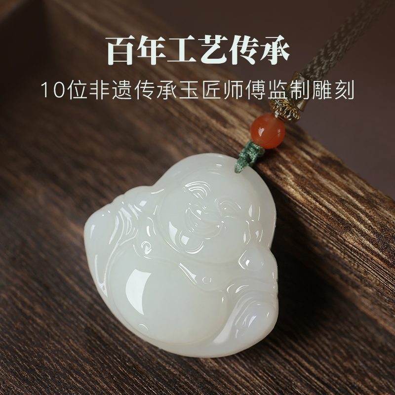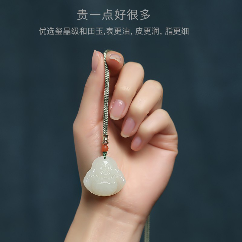 和田玉佛吊坠单坠女玉石小弥勒佛像玉坠佛公挂坠佛头玉佩女士项链