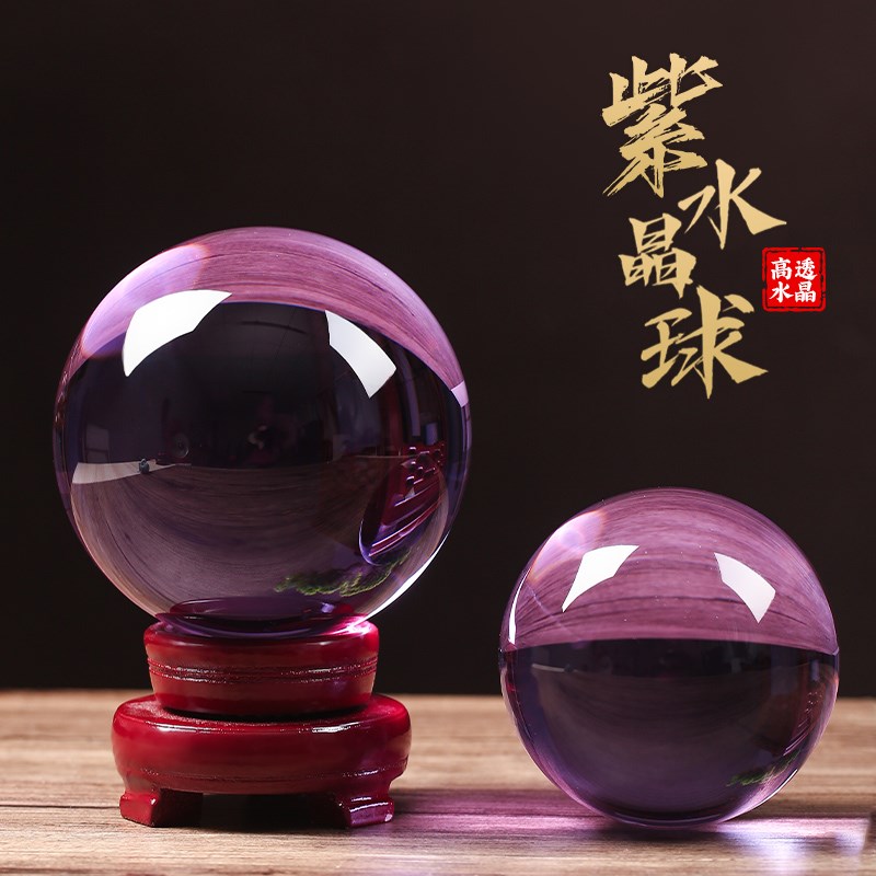 紫色水晶球摆件招财大号玻璃球旋转底座玄关客厅办公室书房装饰品