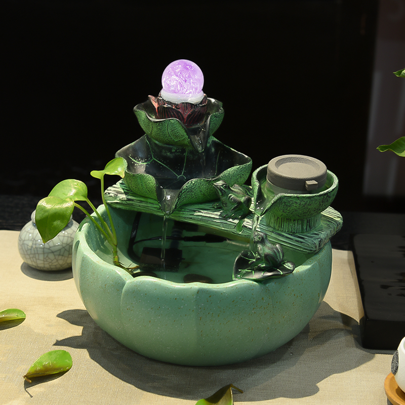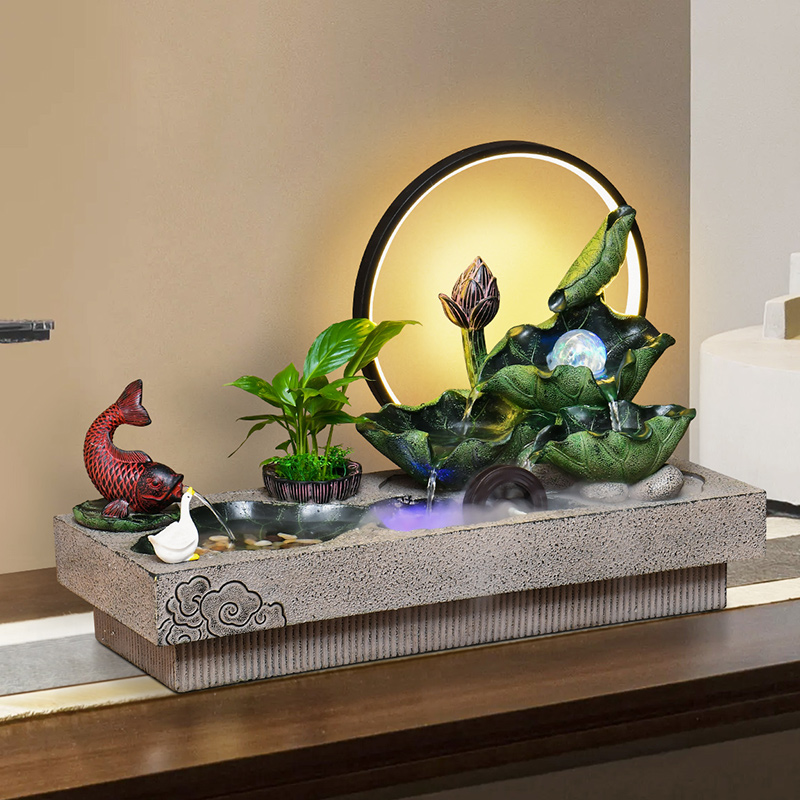 荷花风生水起流水喷泉摆件客厅书房茶室桌面循环水鱼缸装饰乔迁礼