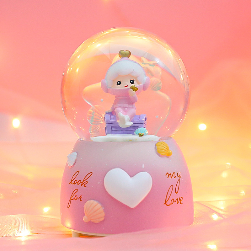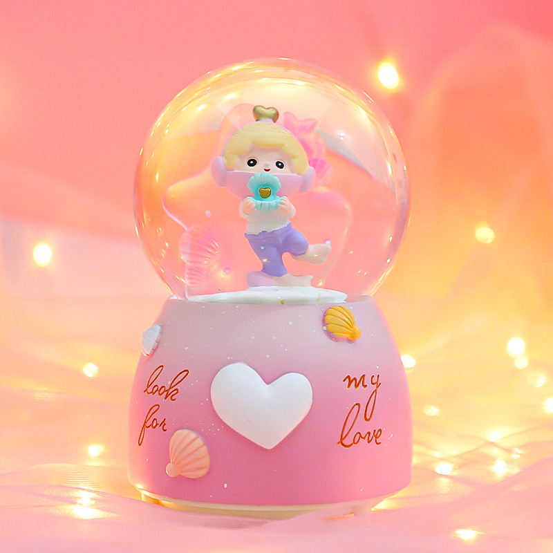 创意海洋之心水晶球八音盒可爱海洋公仔送儿童生日礼物音乐球