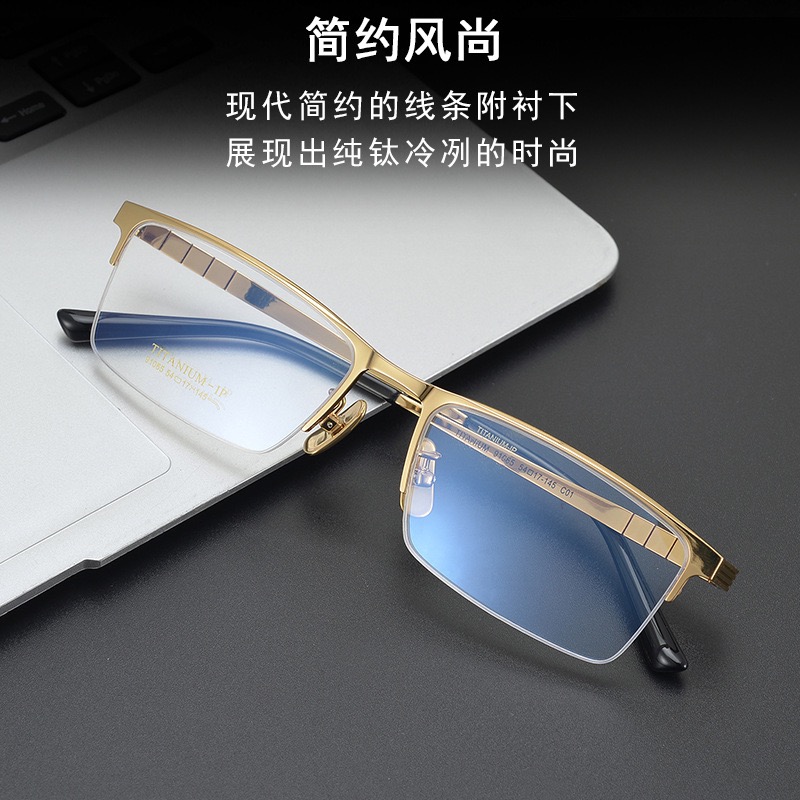 新款超轻纯钛半框眼镜架高端男士24K金近视眼镜框商务防蓝光变色