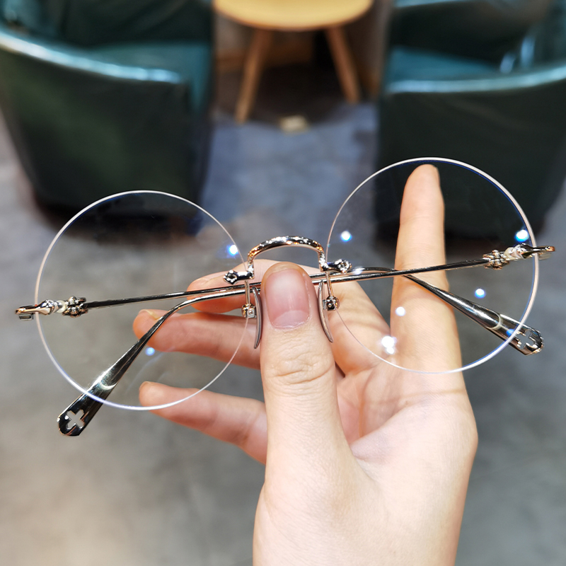 简丹萝心新款超轻复古圆形无框镜架男女文艺百搭纯欲风护目眼镜