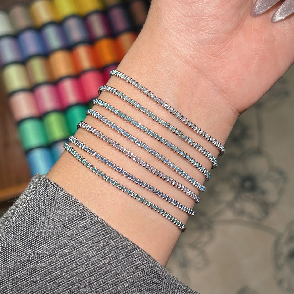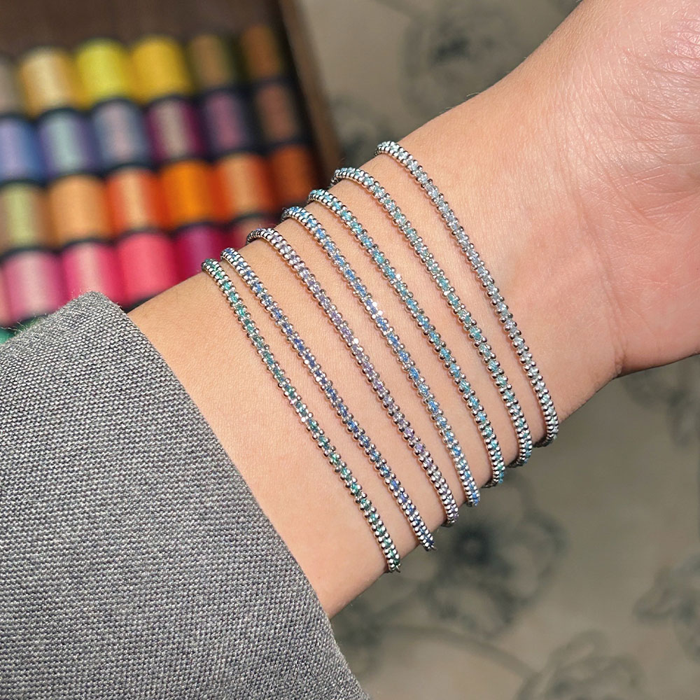 本命年18K法国小红绳编制珠珠闪绳系列手链女情侣款幸运手绳蓝色
