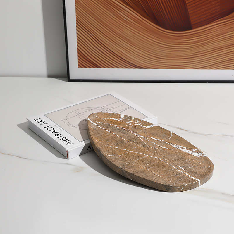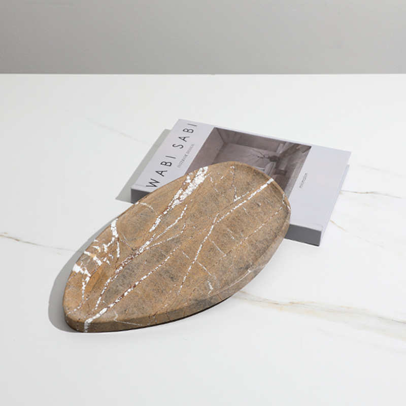 茶几寂侘纹理会餐桌创意复古天然收纳样板房摆件托盘盘所抽象石材