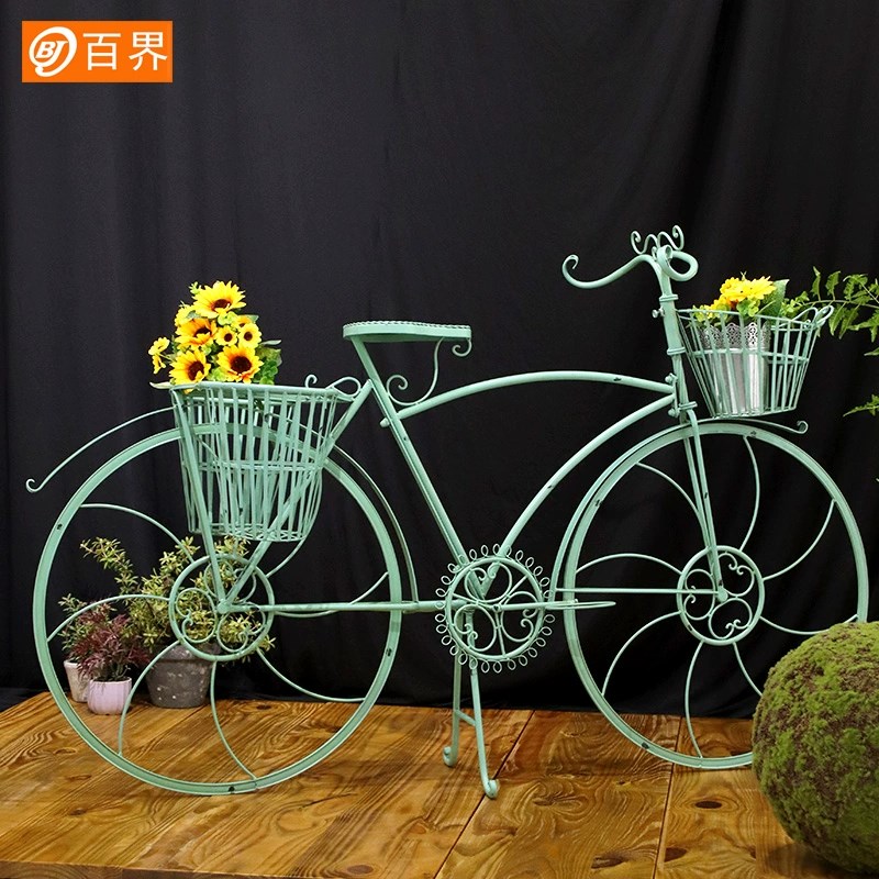 田园铁艺自行车花架子欧式创意摆件家具饰品O商场店铺橱窗装饰道