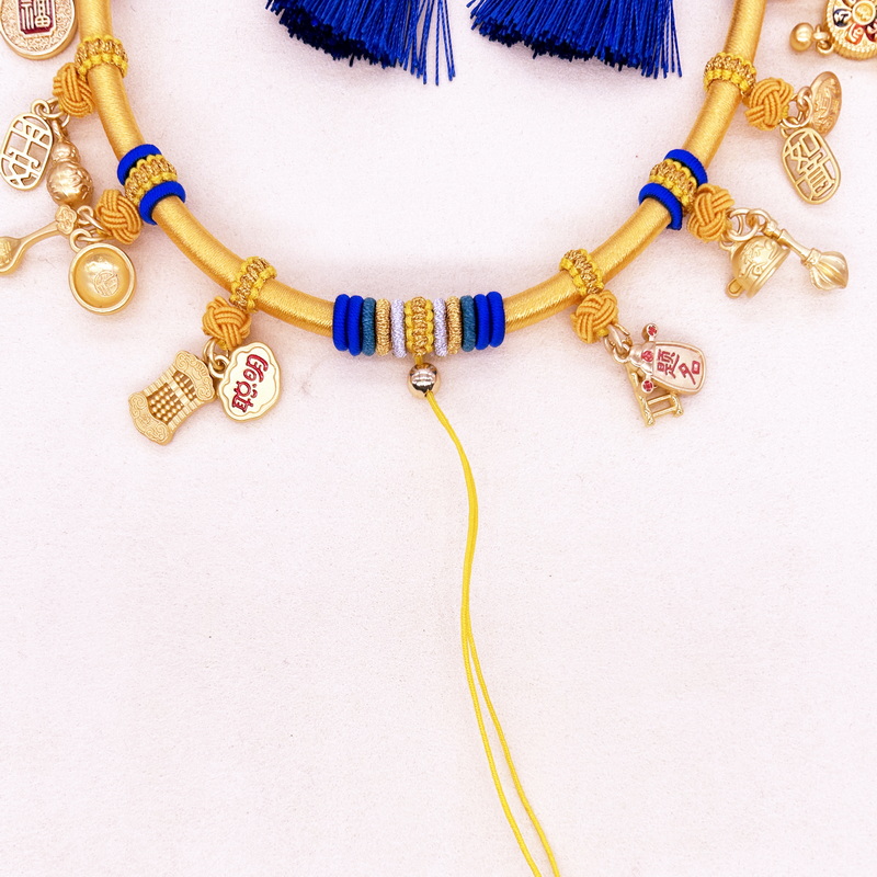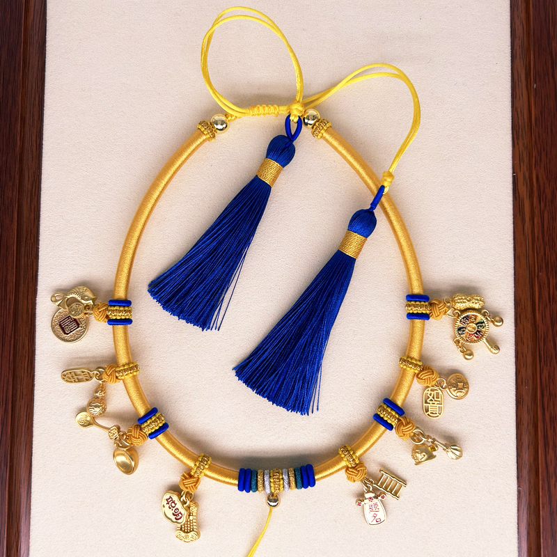 宝宝项圈编织儿童婴满月百天周岁礼物流苏可调节金锁长命锁挂绳