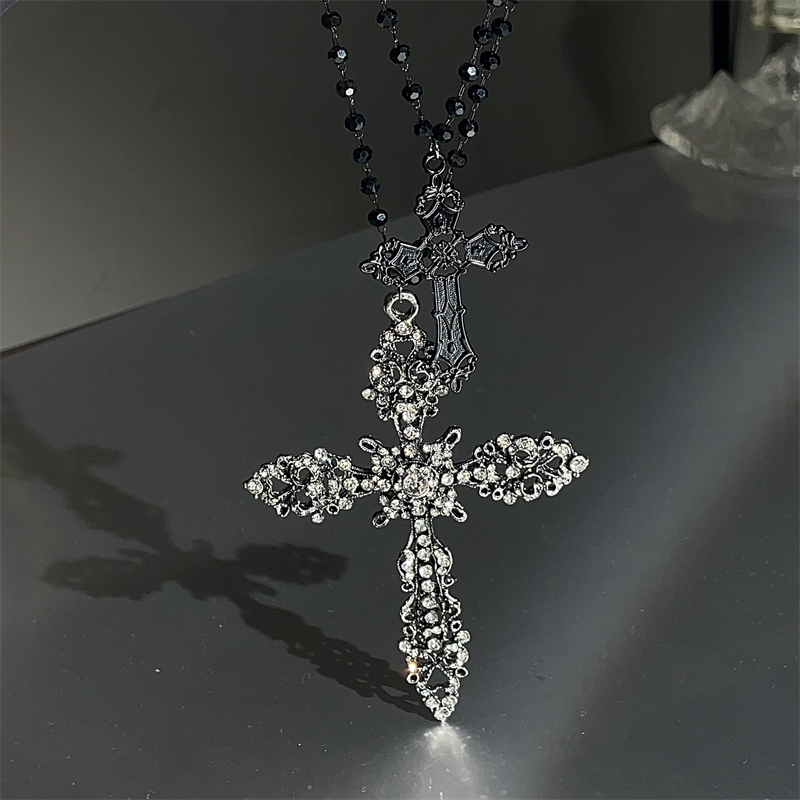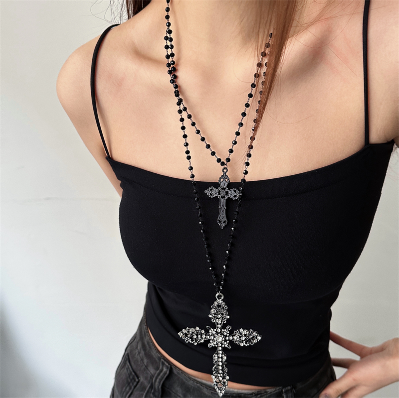 暗黑哥特y2k重工双层十字架串珠项链女小众设计感朋克个性锁骨链