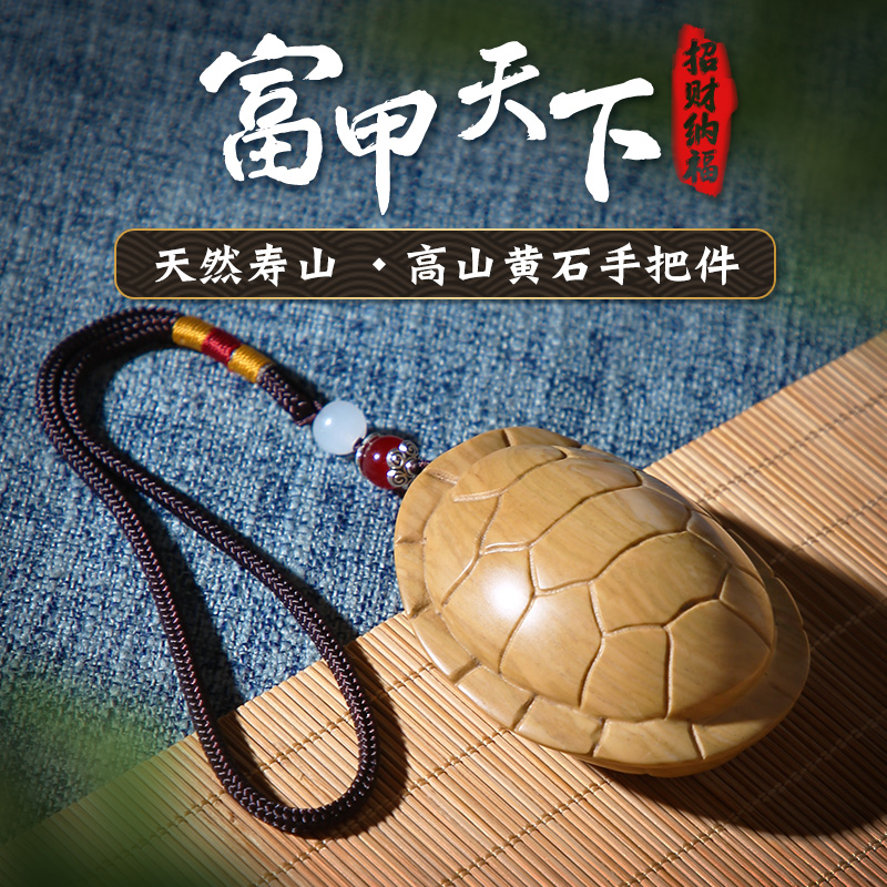 天然寿山高山黄石雕刻富甲天下龟壳手把件桌面摆件把玩件龟甲把件