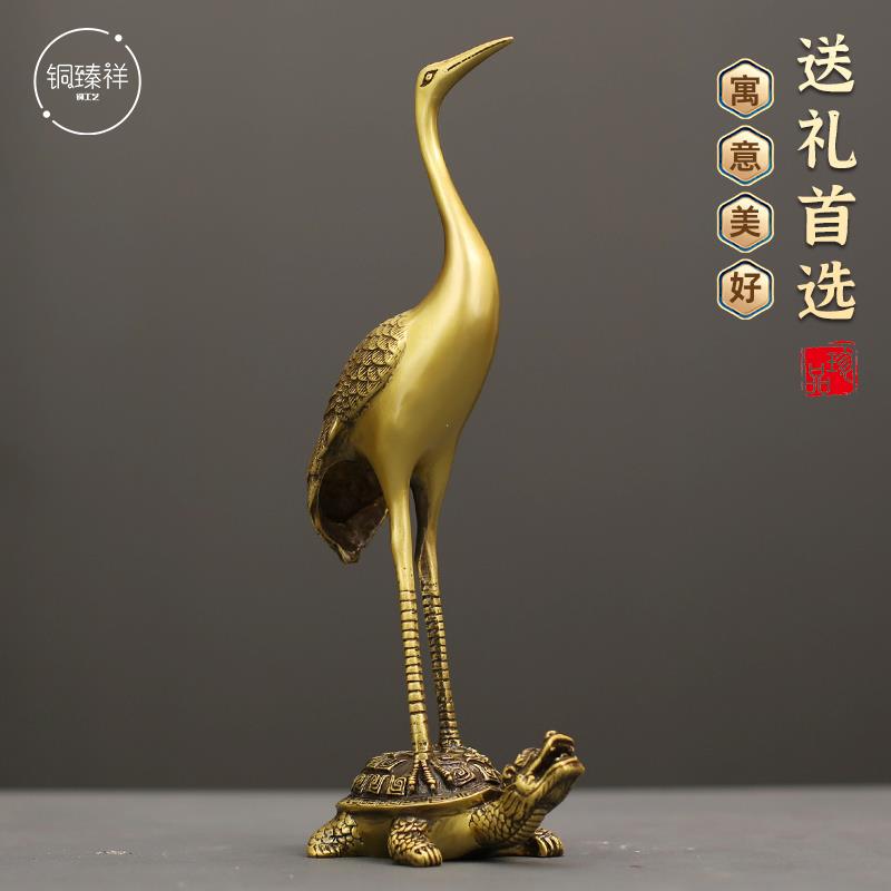黄铜龟鹤延年摆件送老人长辈礼品客厅玄关中式摆件桌面落地工艺品