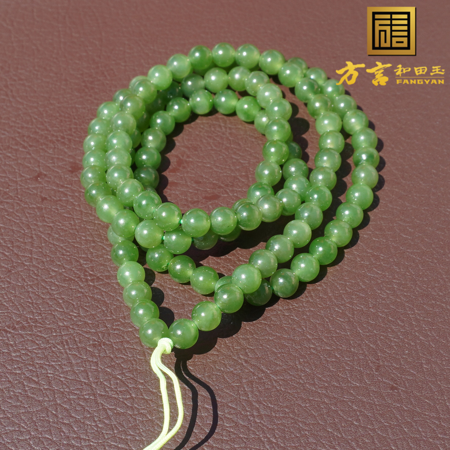 方言和田玉俄罗斯绿色名品油润细腻阳绿碧玉5.5mm108颗圆珠手串A6