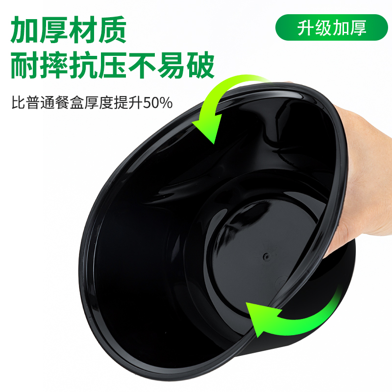 圆形1000ml一次性餐盒塑料外卖黑色打包盒带盖快餐便当饭盒汤碗