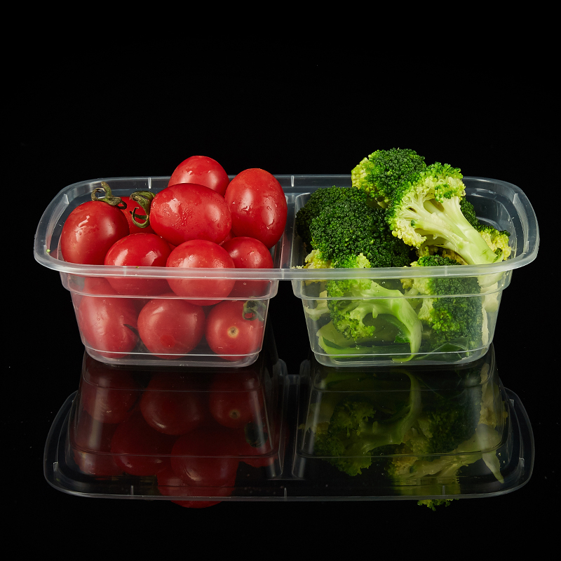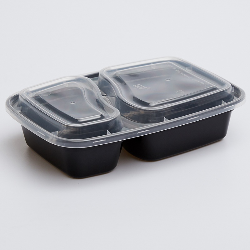 美式双格1000ML一次性餐盒打包盒快餐便当包邮加厚透明外卖盒便当