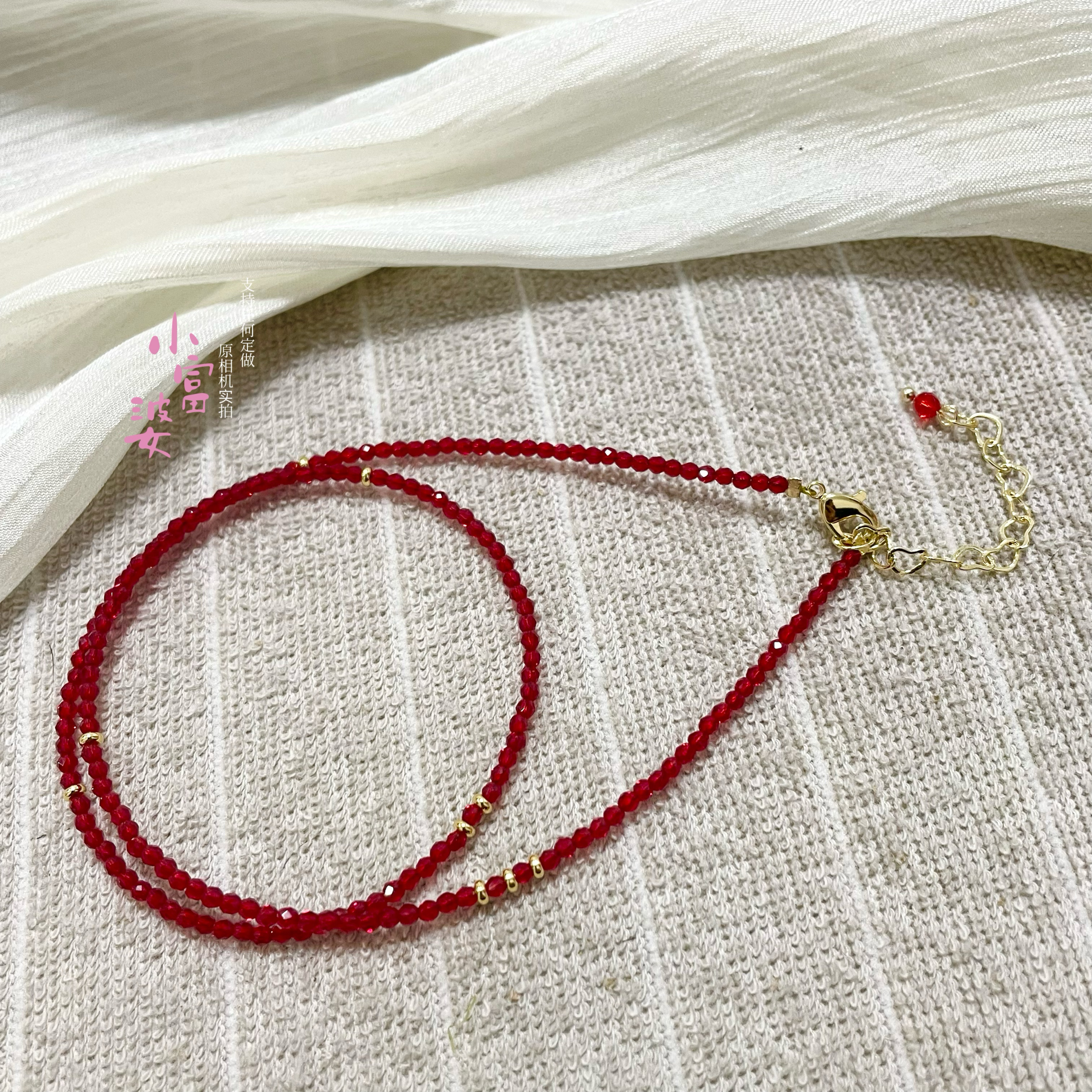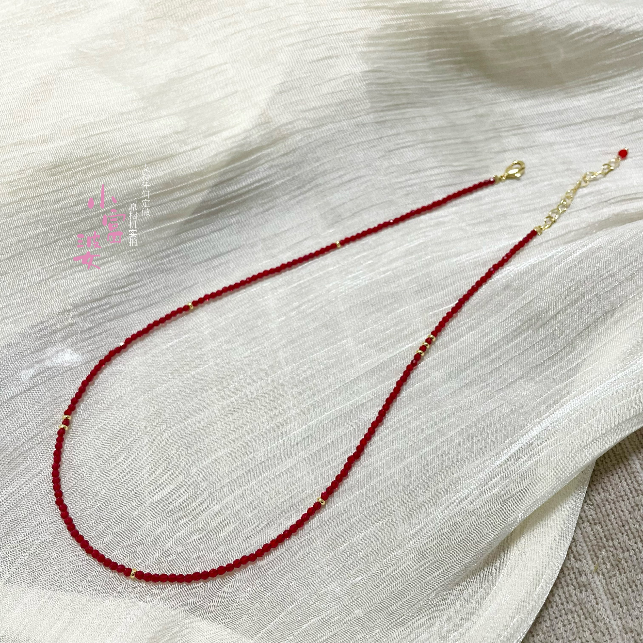白百合同款奥地利红色水晶施家尖晶石石榴红女款镀金锁骨链短颈链