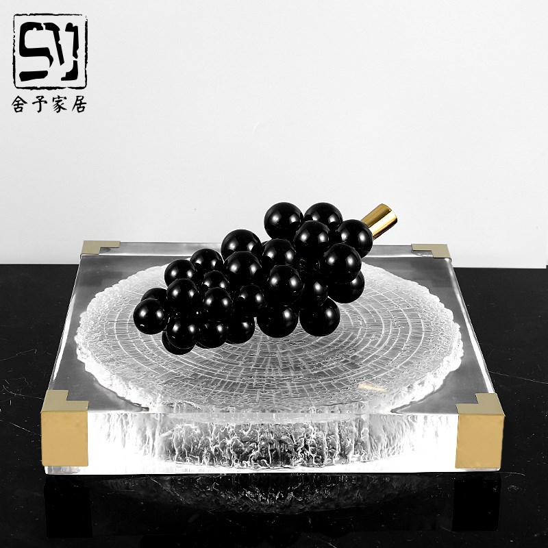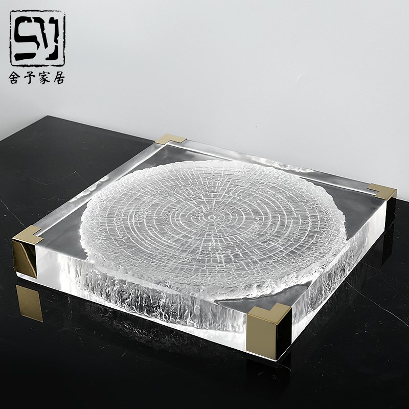 透明树脂年d轮茶盘创意中式家居饰品样板房客厅茶几轻奢托盘摆件