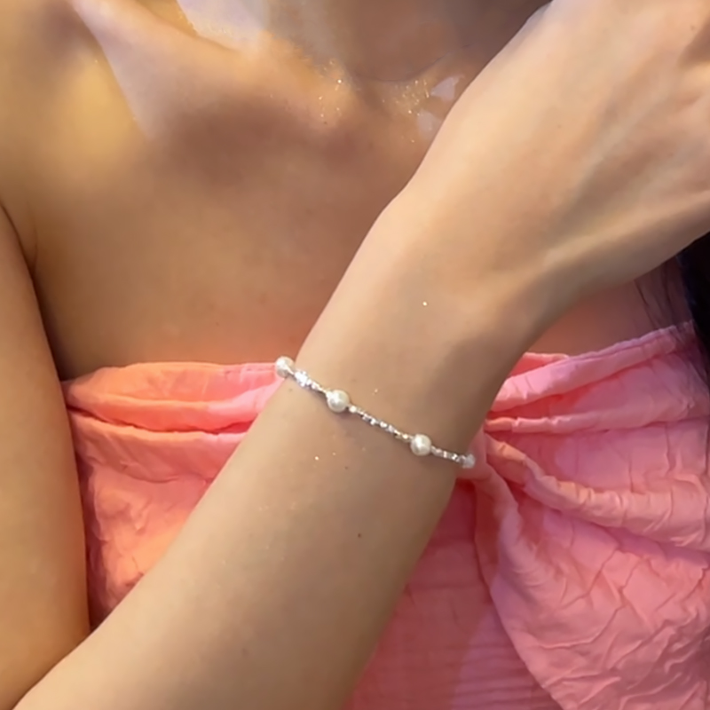 S999纯银碎银子珍珠项链颈链女款轻奢小众锁骨链2025新款爆款夏季