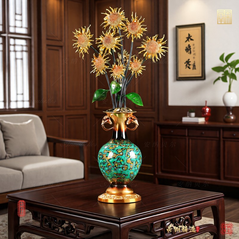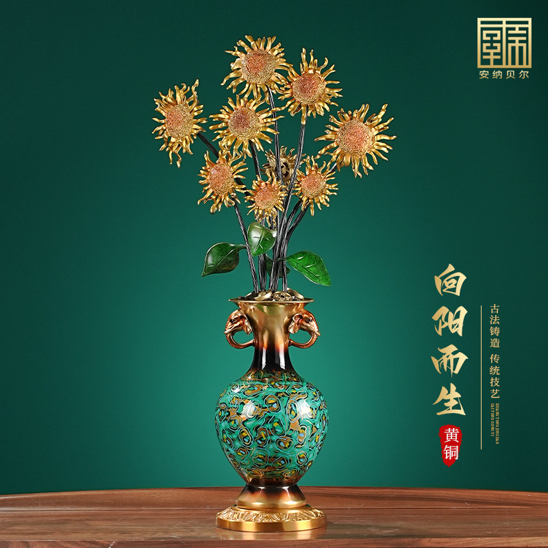 向日葵铜摆件高端客厅办公室入户玄关装饰工艺品搬家乔迁礼物贺礼