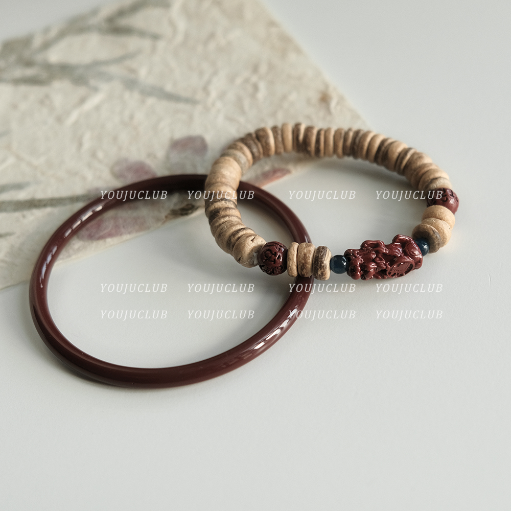 YOUJUclub-半生缘~复古名族风古风精致串珠酒红色新中式手镯手链