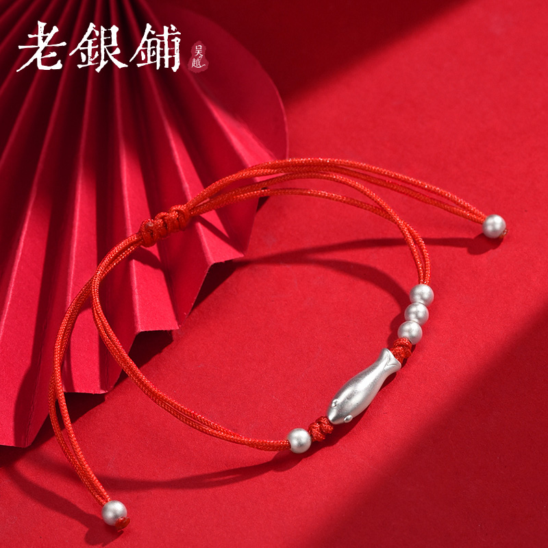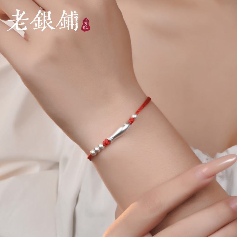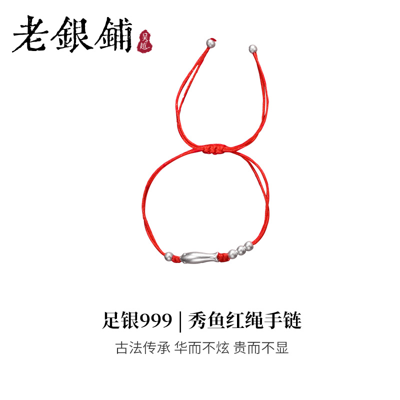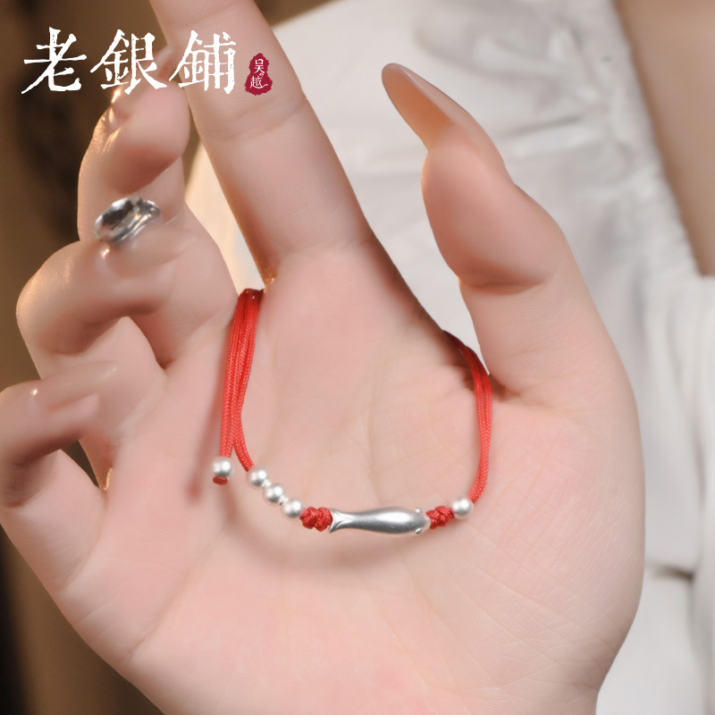 吴越老银铺足银999秀鱼红绳手链好运红绳转运本命年中国风百搭