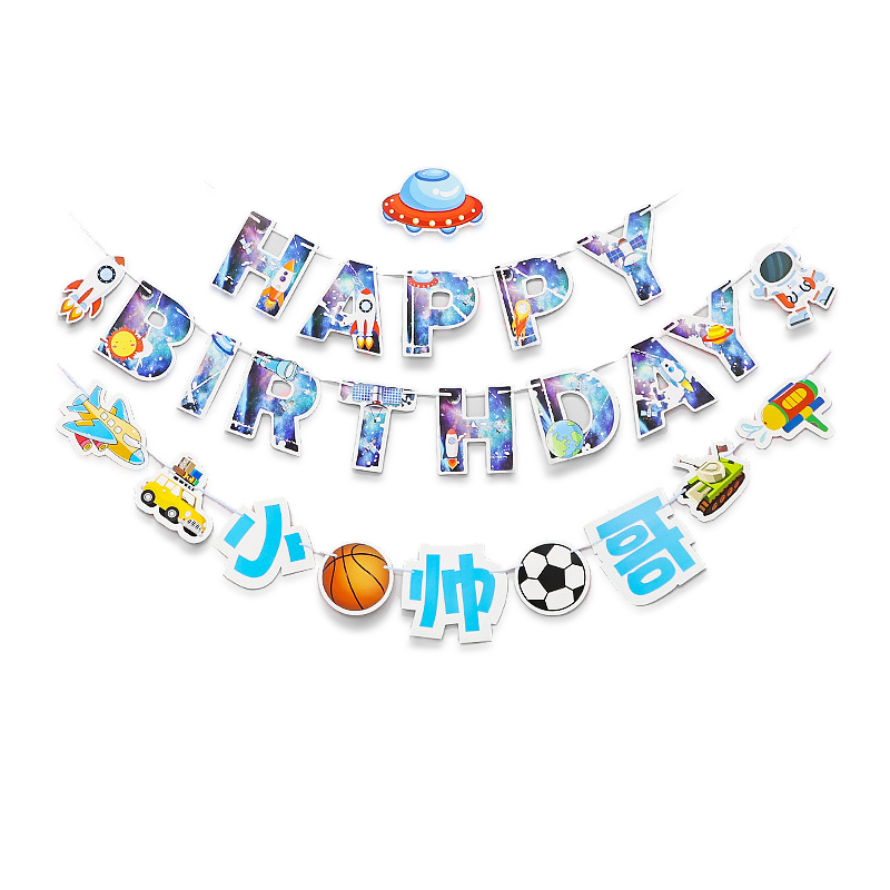速发生日快乐派对装儿用品饰景男孩宝宝周岁场童布置背景墙横幅拉