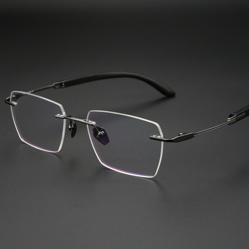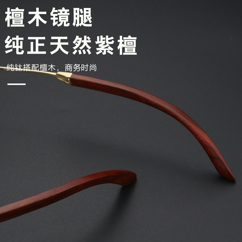 无框眼镜近视男可配度数防蓝光变色纯钛无边框眼睛框小叶紫檀镜架