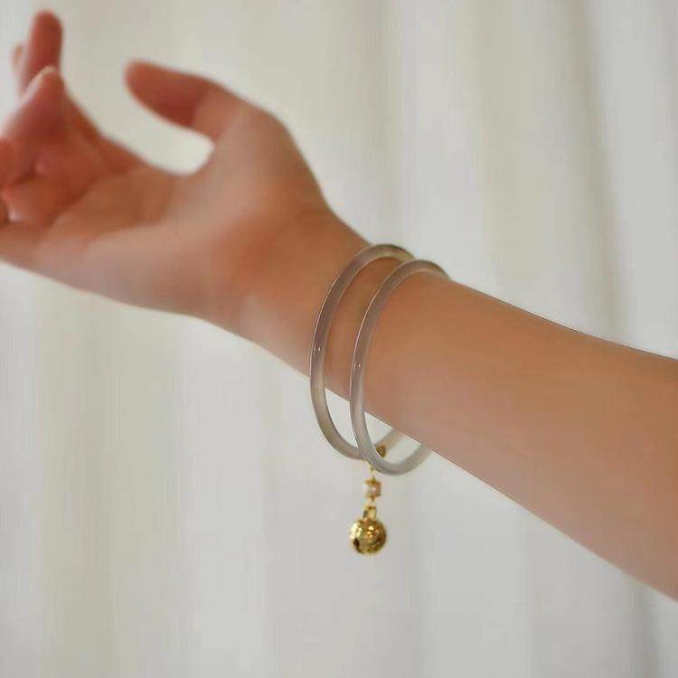 叮当镯手镯古风女玉髓一铃铛细天然玛瑙冷淡风汉服玉镯对礼物镯子