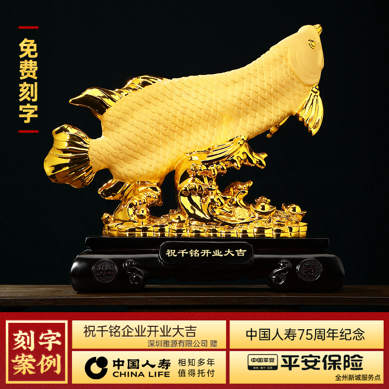财富金龙鱼摆件招财客厅办公室酒柜前台装饰品公司乔迁开业礼物