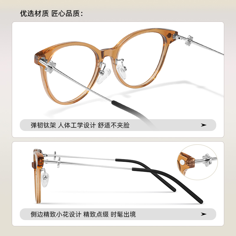 2025新款复古猫眼近视眼镜框女可配度数小fafa纯钛板材素颜眼睛架