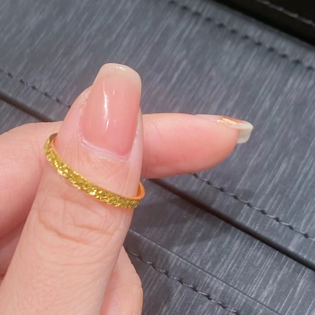 5G黄金色沙金镀金999碎碎冰戒指男女情侣对戒素圈食指戒细款指环