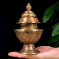 药师佛铜像 居家中式尼泊尔手工全鎏金玄关客厅三宝佛佛摆件10寸